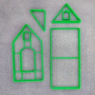 При выборе коробки для такого домика следует также учитывать свободный край крыши (размер детали после выпечки 9 на 18 см.) В готовом виде подобный домик входит в коробку 20-20-22 см